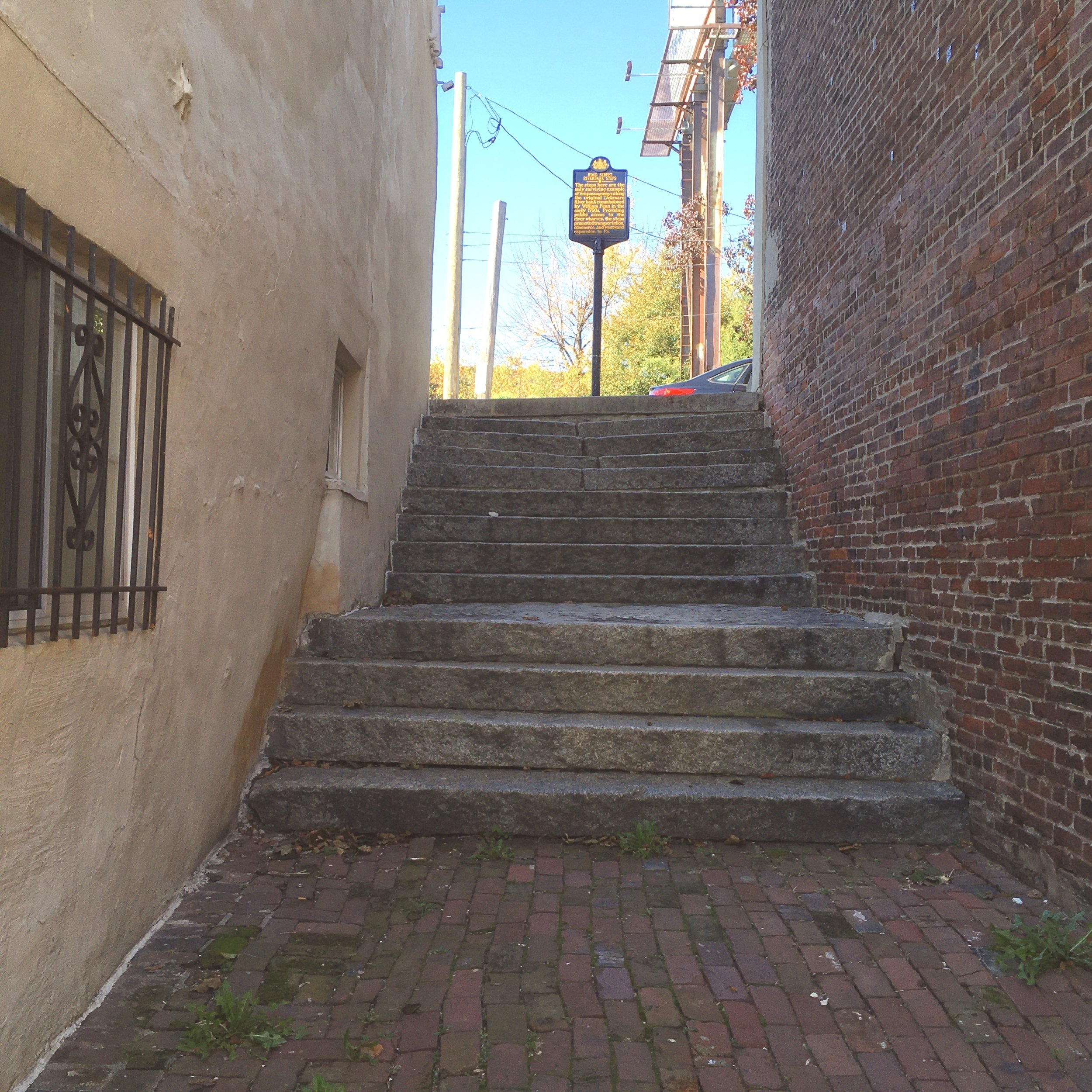 This is the last remaining stairway along Philadelphia’s old sea wall. The stairways were ordered by William Penn to give citizens easy public access to the waterfront. Photo by Jim Murphy.
